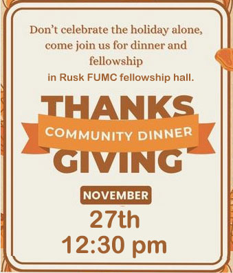 ✓November 23rd - 6:00 PM - Rusk Ministerial Alliance Community Service at Rusk Bible Church