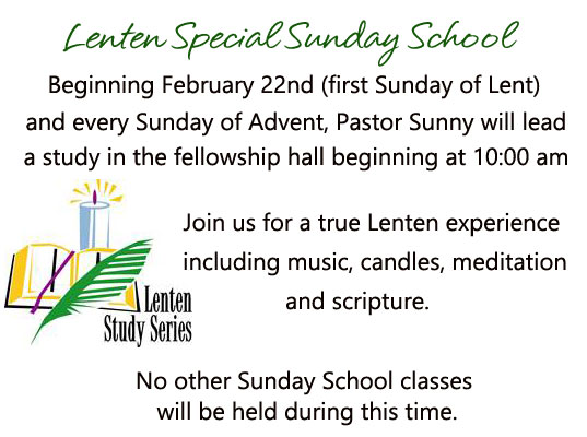 Sundays: Meet & Greet - 9:45 a.m. ~ Sunday School - 10:00 a.m ~ Sunday Worship - 11:00 a.m.